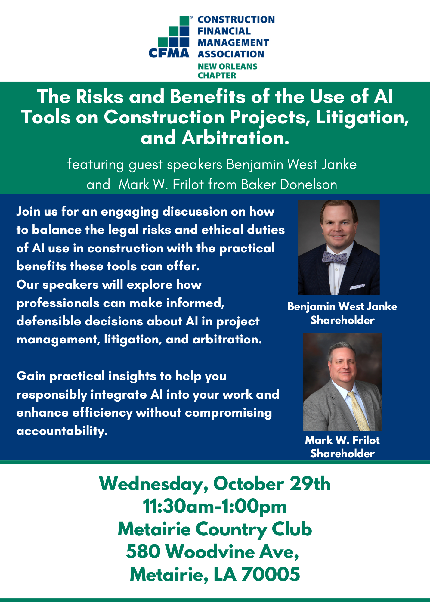 Oct 29, 2025 - 11:30 AM (CT) - Metairie Country Club, 580 Woodvine Ave, Metairie, LA 70005